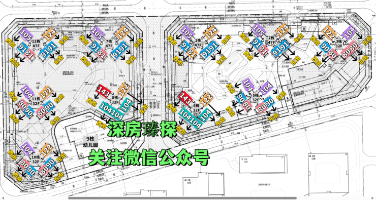 7、鹏宸云筑除了6栋/8栋楼王单位是2梯5户设计,其它的32层住宅都是2梯6户,后期入住后可能等电梯时间蛮长的,不过现在采用的都是高速电梯,应该会有所改善。