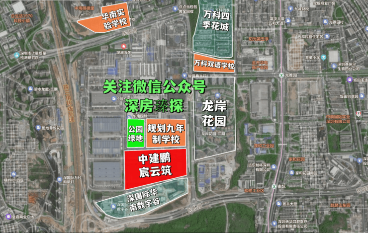 学校配套:项目自带1所12班制幼儿园,北侧规划有一所广东省一级学校建设标准的九年一贯制72班学校待建,据传是深实验学校进驻,根据龙华教育局2024年最新的学区划分,小初学区都是划分在华南实验学校。