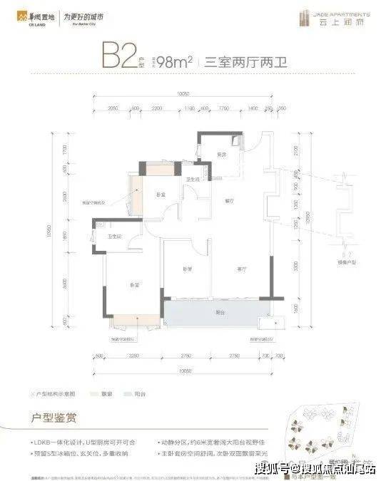 B3户型:MAX方厅设计,客厅4.9米开间,LDKB一体化+X全场景,得房率83.95%,西南或东南朝向。