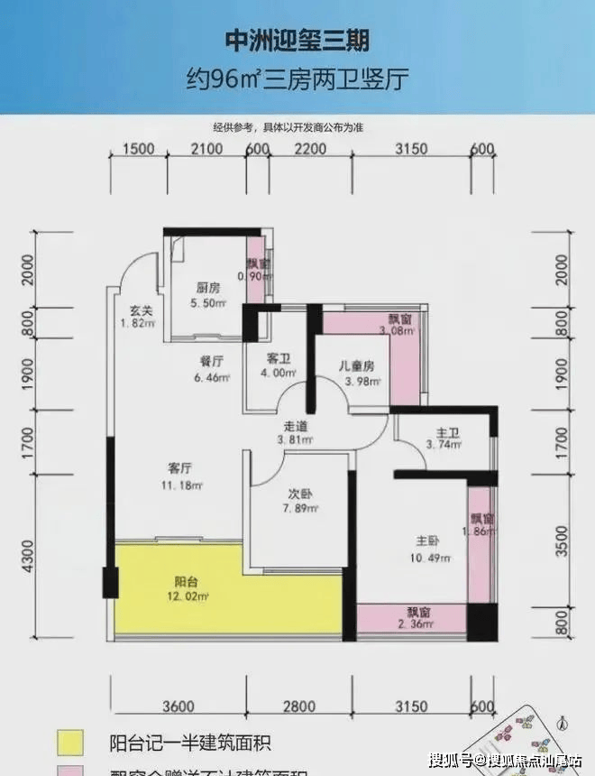 93-96㎡的3房2厅2卫,设计的是经典竖厅格局,进门入户玄关,客厅3.6米开间,LDKB一体化设计,三开间朝南,3个卧室分别做到了主卧14.71㎡/次卧7.89㎡/次卧7.06㎡(包含墙体飘窗),客厅连接次卧出6.4米长的大阳台,U型厨房,卫生间干湿分离,赠送面积高达14.21㎡,东南或正南朝向。