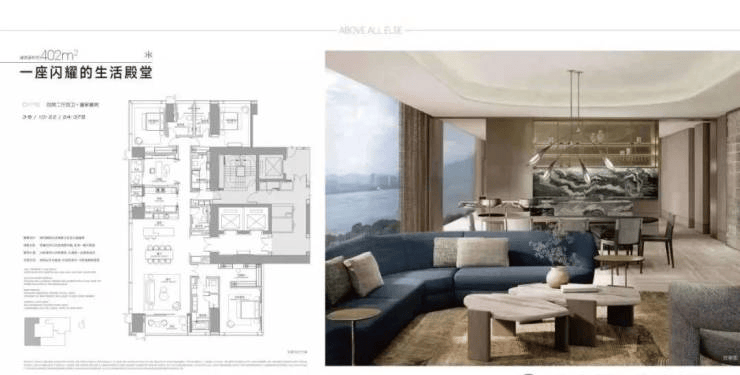 公寓面积段覆盖300-1000㎡(具体包括300㎡、400㎡、460㎡、570㎡等大平层),起步户型预计200㎡以上,主打“总裁级大平层”,满足高净值人群对空间尺度与私密性的需求。