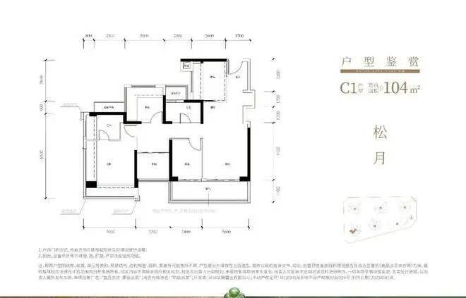 104㎡的4房2厅2卫,设计的是竖厅格局,进门入户玄关,客厅3.6米开间,LDKB一体化,S墙设计预留冰箱卡槽位,四开间朝南,主卧+1个次卧270°飘窗,客厅连接次卧出6米长大阳台,L型厨房,得房率约79.45%(不含赠送),西南或东南朝向。