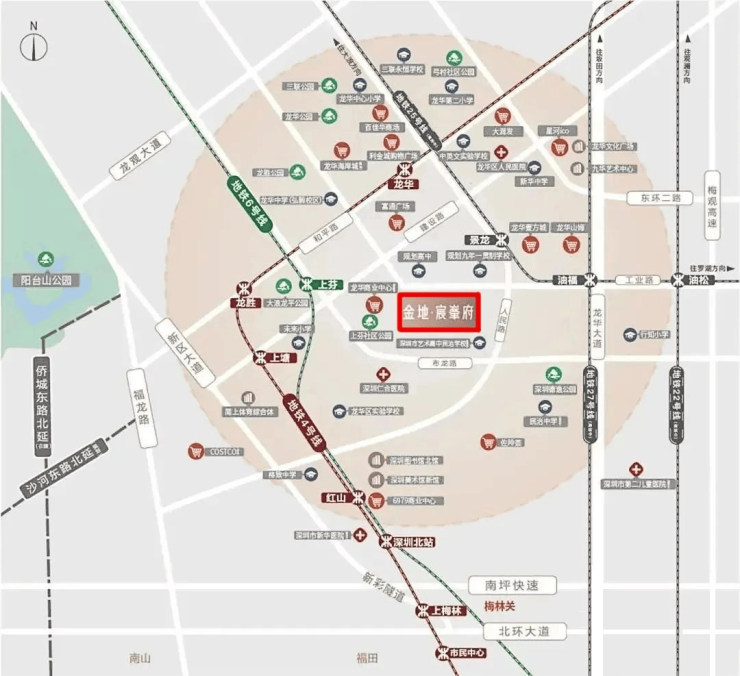 交通方面:位于龙华多条地铁线交汇处,地铁 4 号线龙华站及 6 号线上芬站举步即达,规划中地铁22、25、27号线等站点(规划中景龙站/油福站约400米)就近而设,加上规划中的侨城东路北延线和沙河东路北延线贯通龙华、南山、福田,直抵深圳湾,未来立体交通路网接驳,无界一城繁华生活。