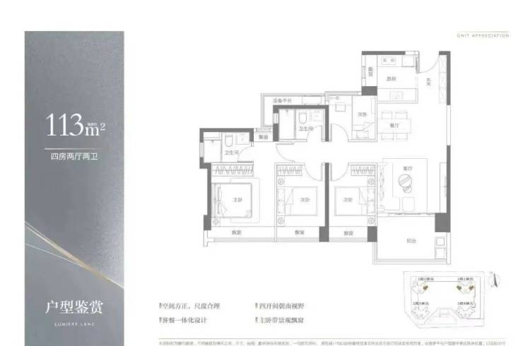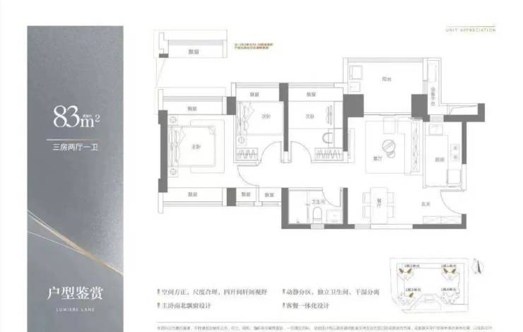产品面积段:建面约83—113㎡三至四房