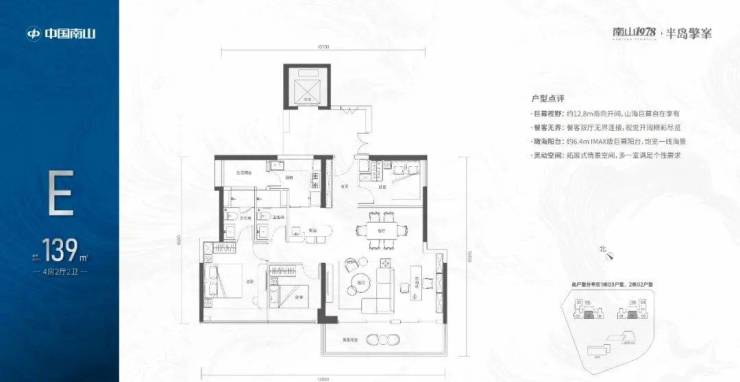 【139㎡的4房2厅2卫】1栋03/2栋02高区户型,电梯入户送独立公区,竖厅类双龙抱珠格局,四开间朝南,主卧大套间设计,有1个多功能间可以做书房,6.4米长观景大阳台,L型厨房带1个生活阳台,卫生间干湿分离,得房率:72.07%(不含赠送),西南朝向;