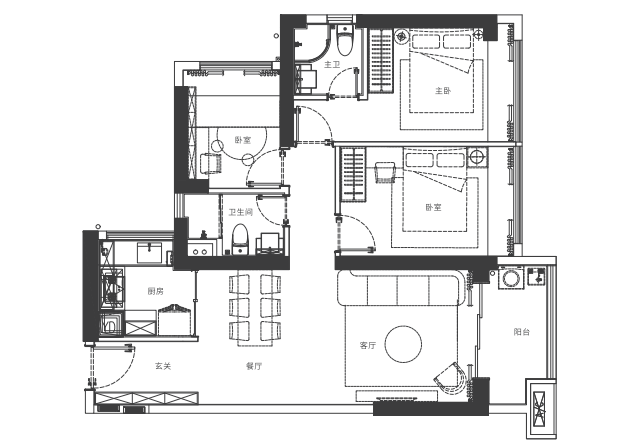 - 112-121㎡四房两卫:横厅设计,主卧面积大(121㎡主卧可改独立衣帽间)。