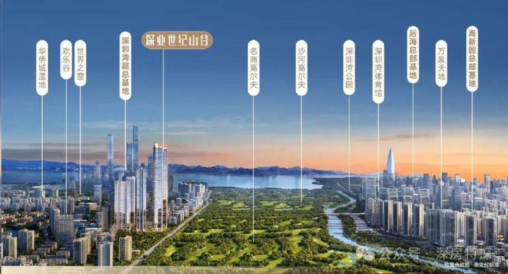 深业世纪山谷位于南山区沙河东路218号,占地面积约4.2万㎡,总建筑面积约38.9万㎡,是集住宅、公寓、酒店、商业和办公等多种业态于一体的城市综合体项目。项目位于大沙河生态长廊之上,西临约200万㎡果岭名商高尔夫球场,推窗可享一线果岭生态景观。而且南向可以俯瞰深圳湾海景,以及地标建筑春笋和跨海大桥,把“名片级”景观尽收眼底。目前片区能够同时拥有一线高尔夫果岭景观+深圳湾海景的宜居新房,真的是少之又少。
