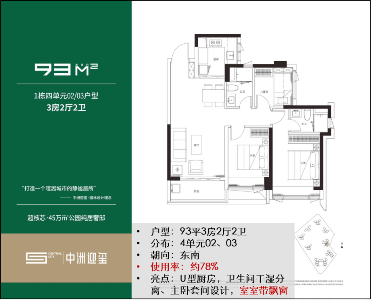 首推的「中洲迎玺」一期住宅层高30-47F,规划644户93-136㎡ 3-4房。