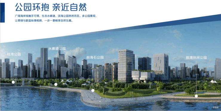 中国社会历来有“水为财”的讲究,而财气最充沛的莫过于有情环抱水,占据前湾首排C位的嘉里中心,正好位于桂湾河与前海湾的河海交汇处,并形成了一道有情环抱水,可谓“玉带环腰”,并且坐拥一线海景及水廊道景观资源、滨海公园,绿意环绕四周,区内罕见。