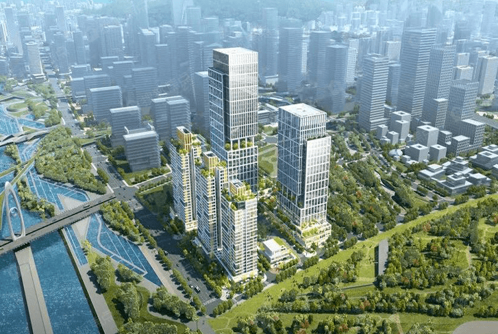 总建筑面积逾40万㎡,分三期开发,包括写字楼、公寓、商业及酒店等,一期于2020年上半年竣工,按照健康研究院WELL金级认证标准设计与建造,并取得美国LEED的铂金级预认证,国家绿色建筑三星级设计标识认证。