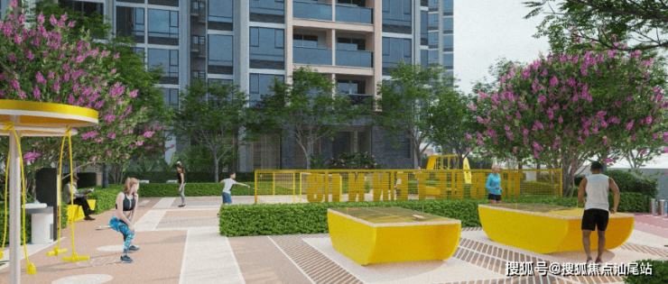 约1500平24小时运动聚落,设置羽毛球、乒乓球、儿童游乐园、成人健身器材等
