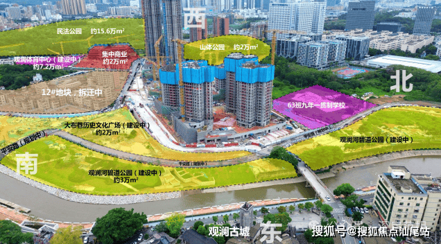 金光华溪山禾玺二期总建面约120万㎡,集住宅、商业、教育、文体和生态环境于一体。北面是63班九年一贯制学校、南面是历史文化广场、东面是观澜河碧道公园,与观澜古墟一河之隔,三面环景、无遮挡,也是整个大城景观面最好的位置。