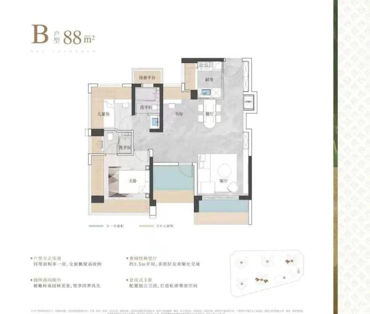 而且朝向要么东南要么西南,房间为L字形采光面设计,堪称亮点。