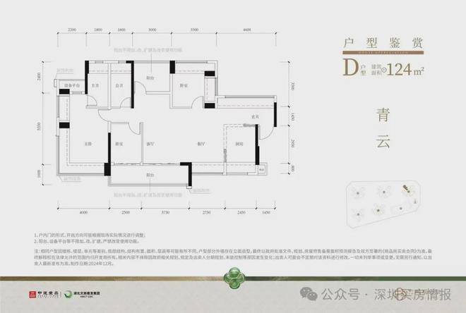 设计的是横厅南北通透格局,进门入户玄关,客餐厅5.9米开间,4个卧室分别做到了4米/3.1米/2.875米/2.45米的宽度,主卧+1个次卧270°飘窗,客厅连接次卧出5.7米长大阳台,U型厨房,得房率约97%(包含赠送),阳台主朝西南或东南向。