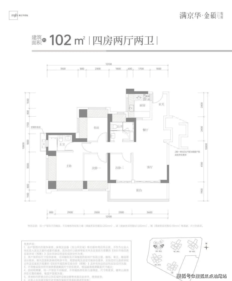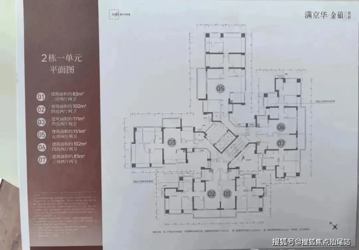 本次推售的是满京华金硕悦府,共由5栋32-48层高的住宅组成,其中1栋1/2单元住宅48F,2栋1单元住宅32F,2栋2单元住宅47F,3栋住宅48F,4栋是1所幼儿园,还配建有社区菜市场,总规划1186户,其中2栋1单元2梯6户,1栋1单元楼王3梯5户,其它栋数全部3梯6户设计。