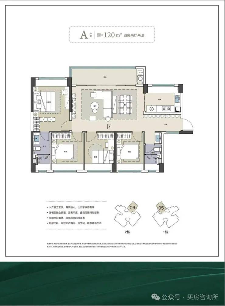 建面约120㎡的4房2厅2卫,南北通透,视野开阔,仅有62套,总价也相对高一些。