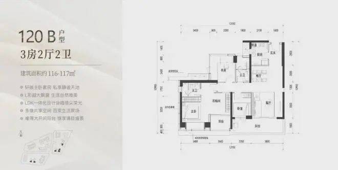 105㎡的3房2厅2卫,B户型(2栋3单元02/06户型),设计的是经典竖厅格局,客厅3.6米开间,LDKB一体化设计,三开间朝南,动静分区,3个卧室分别做到了主卧13.12㎡/次卧9.9㎡/次卧8.4㎡(包含墙体飘窗),客厅连接次卧出6.4米长的宽景大阳台,U型厨房,卫生间干湿分离,得房率约90%(包含赠送),正南或东南朝向。
