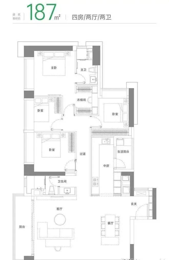 建面约187m²四房两厅两卫