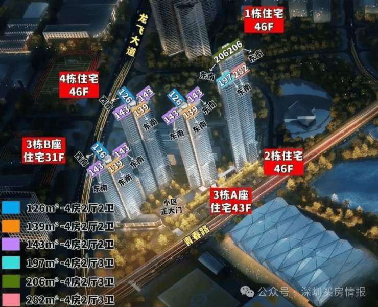 最新消息:【中海·大运玖章花园】,项目共605套房源,面积有126-139-143㎡的4房2卫,197-206-282㎡的4房3卫户型,都是设计的大平层格局,有少量几套顶复户型,首推2栋以及3栋A座,共243套房源。