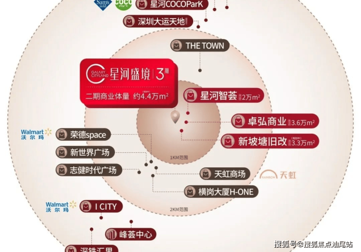 家门口超13万㎡商业(盛境约4.4万㎡,卓弘星辰约3.6万㎡(在建)、智荟约2万㎡),约2公里范围内覆盖30万㎡商业,繁华商圈拥簇,酣熟生活即刻兑现。5公里内更享百万平商业,星河COCOPark(龙岗山姆会员店)、SKY MALL、天光城等知名商业体环伺,尽揽都市繁华便利。