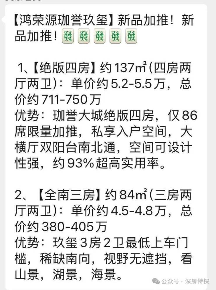 宝安沙井,鸿荣源珈誉玖玺10栋1单元刚刚取证!7月19日正式开盘,本次新推10栋1单元楼王单位,面积有84㎡的3房2卫,137㎡的4房2卫户型,其中137㎡户型可以改5房。价格方面:84㎡总价380-405万,137㎡711-750万。计划在2026年12月前带简装交房,赠送全屋海尔中央空调。