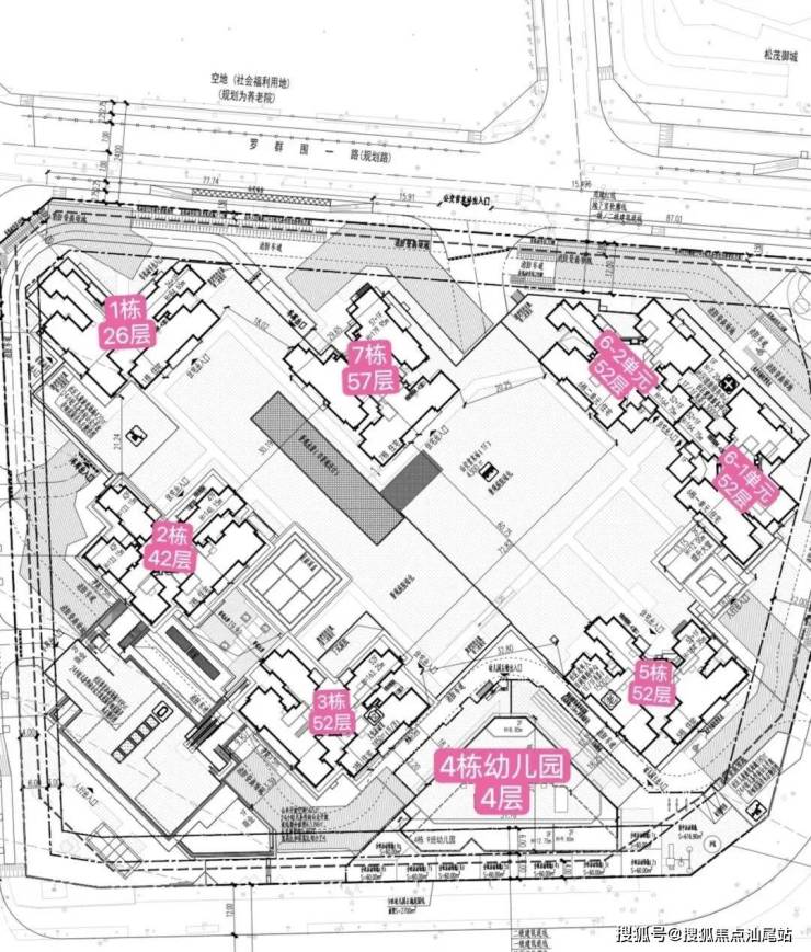 总规划1836套,全部是商品房,内置有公交首末站,文化活动室,社区老年人日常照料中心,社康服务中心,地下室有3层,规划停车位2062个,车位占比约1:12。