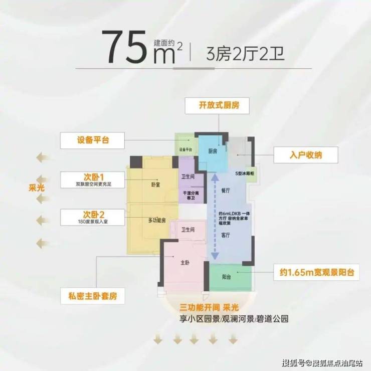 70-80平户型在市面上有楼盘在售,但基本为3房1卫或2房1卫,溪山禾玺基于新规设计优势,75平直接升级为3房2卫,具备功能全的同时还压低了总价!