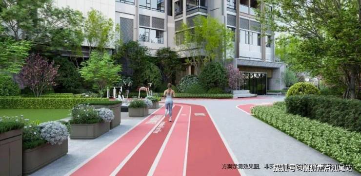 社区设施主要涵盖约300㎡子母无界泳池;约1500㎡24小时运动聚落,设置羽毛球、乒乓球、儿童游乐园、成人健身器材等;2大有氧跑道,园林中约180米元气跑道和运动场艺术跑道。