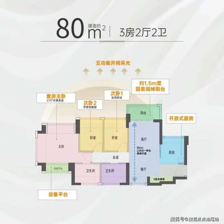 80㎡是本批次产品中唯一设计为南北对流格局,而且是整体横向采光,位于1栋,仅有2条腿,朝向社区内部园林相对静谧。