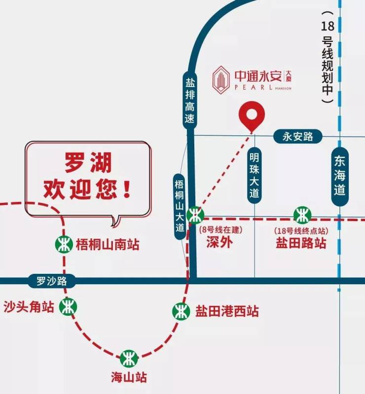 中通永安大厦毗邻8号线【深外高中站】,【盐田路站】双地铁口,随着地铁8号线的开通,从深外高中站出发,4站即到罗湖,享受罗湖的繁华商圈。乘坐8号线,4站可达大梅沙、5站可达小梅沙,繁华与山海自由切换,坐享地铁沿线物业的发展红利。