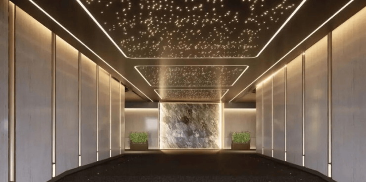 从极具仪式感的酒店式落客体验开始,经由五进式归家场景,演绎名门仪式。地库玄关星空顶设计,地库车马厅泛大堂,归家路上星辰为伴。精工雨棚、天然石材墙面、酒店式地库玄关、橘皮环氧艺术地坪、定制盲钉减速带等地库配置,颜值与安全皆为藏品标准。