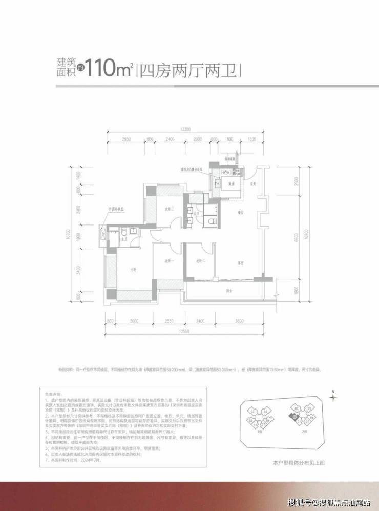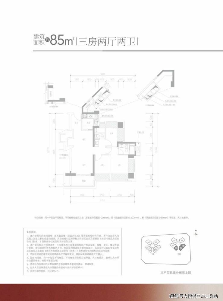 产品户型涵盖建筑面积约85-88㎡的三房两卫、约110-114㎡及约113-119㎡的四房两卫,均为全装修交付。项目规划有高层住宅,包括1栋49层的3梯6户和2栋33层的2梯6户设计,车位比达到1:1.10,共计505个车位。项目容积率为5.74,物业费为4.3元/㎡/月,产权年限为70年,批地时间为2023年4月,预计交楼时间为2026年底。