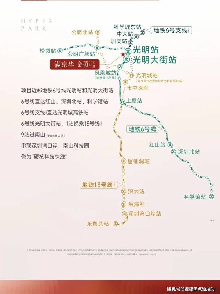满京华·金硕和府,由深圳市满京华置业投资有限公司倾力打造,坐落于深圳光明中心区,具体位于光辉大道与狮山三街交汇处,紧邻地铁6号线光明站D出口约800米。项目总占地面积约11万㎡,总建筑面积高达约88万㎡,其中金硕和府部分占地面积约0.88万㎡,建筑面积约7.48万㎡,规划总套数为458户。