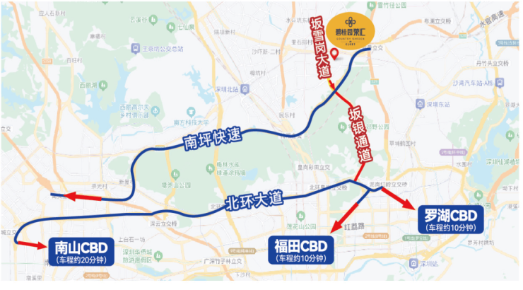 ◇坂田在深圳的中轴,越过梅林关就是福田中心区,是距罗湖、福田、南山CBD最近板块