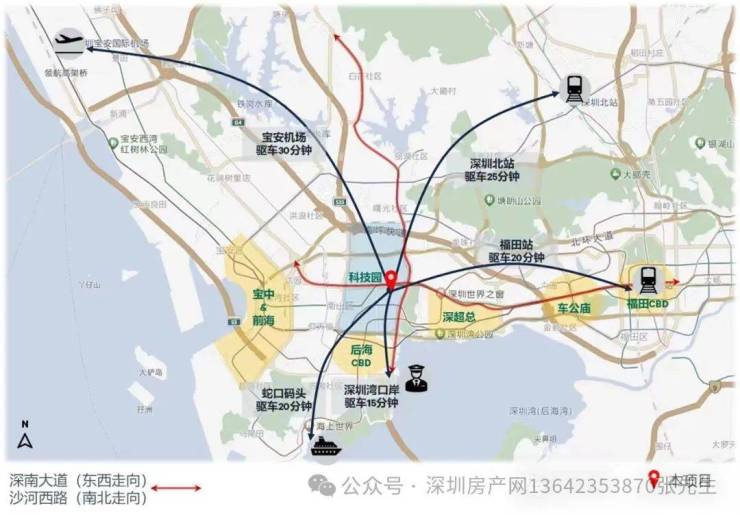 主干道:临近滨海大道、深南大道、东滨路等城市主干道,自驾至深圳湾口岸约10分钟,跨境通行便利。