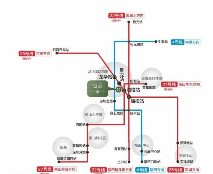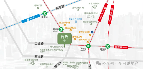 「 六地铁汇聚,打造全新城市枢纽 」4号线(已开通):龙华站直线距离约1000m,深圳纵向城市交通中轴。6号线(已开通):上芬站距离约1200m,链接光明、龙华、福田。25号线(建设中):景龙/油福站直线距离约400m,打通城市东西走向核心动脉。27号线(建设中):油福站直线距离约400m,拥抱前海,覆盖各大高新人才聚集地。22号线(建设中):油松站直线距离约1km,连接福田-龙华各大核心产业区。