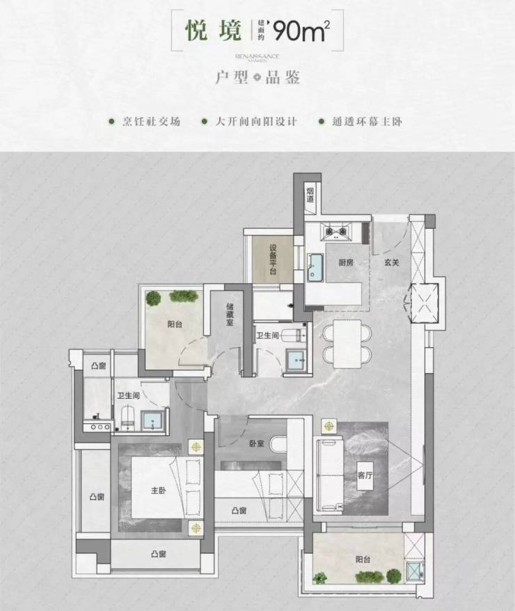 产品方面,打造约90-95-105-143㎡ 新规产品3-4房,使用率极高。