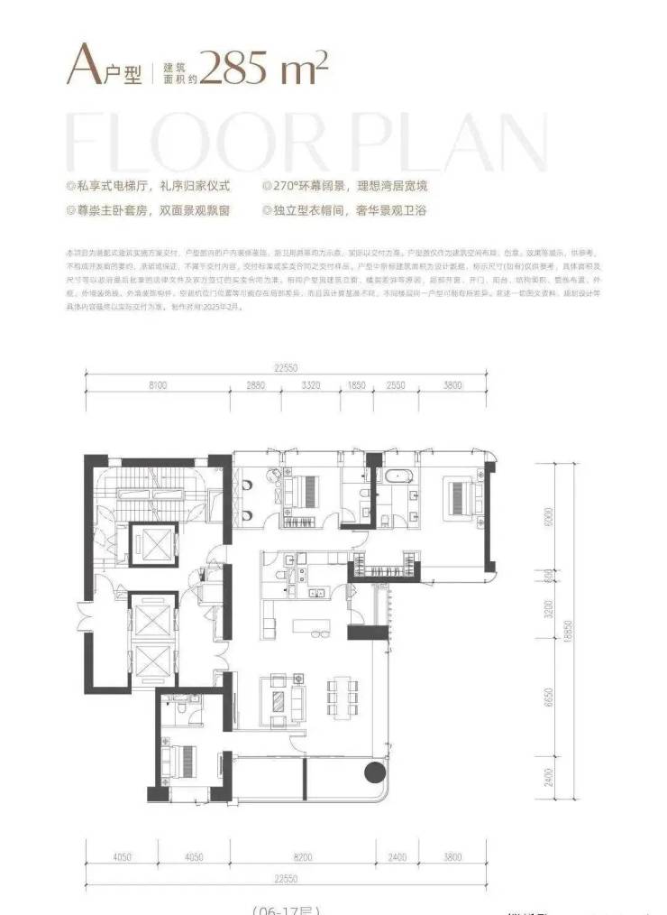 建面约245-285㎡环幕湾居大宅,阔绰4房格局,巨幕全景客厅,灵动多飘窗设计,传承府系高端品质,匹配时代理想湾居。