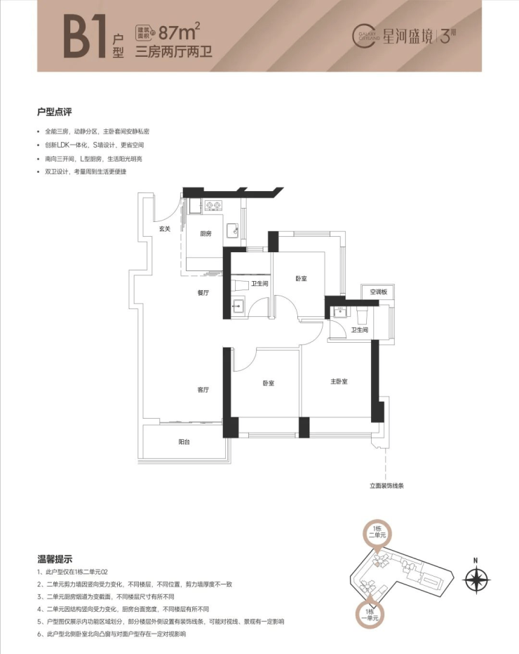 6. 户型实用率高:产品户型实用率出色,83平方的户型做到三房2卫,且为精装修交付,为购房者提供了便利与高性价比。