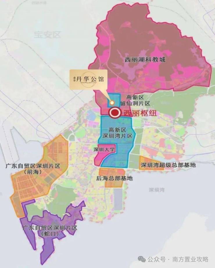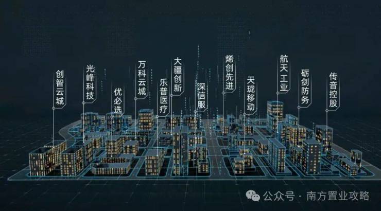 【总部基地】双总部基地——留仙洞和科技园核心区,世界500强总部环伺(大疆创新、乐普医疗、天珑移动等),片区将有60万高端就业人口,约1500家企业入驻。目前南山科技创新中心,深圳科技联合大厦已近完工,总部基地规模再上台阶。传音控股总部,普联总部,深信服总部大厦陆续交付使用中。