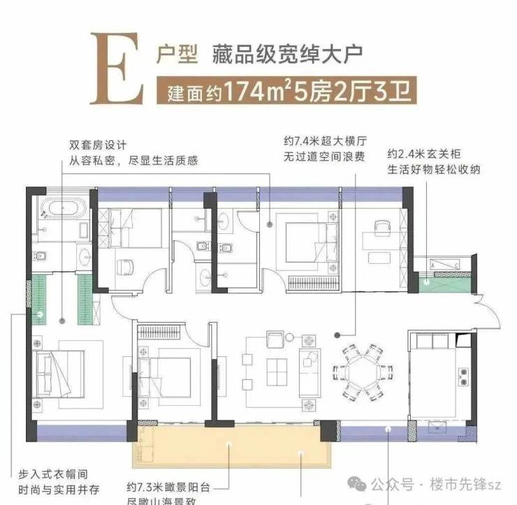 4、改善户型,111-174平 4-5房,可以支撑一些改善需求