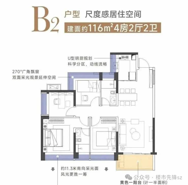 【产品面积段】116-117m'四房,155m'五房梯户比】西区2梯4户、3梯6户 东区35户