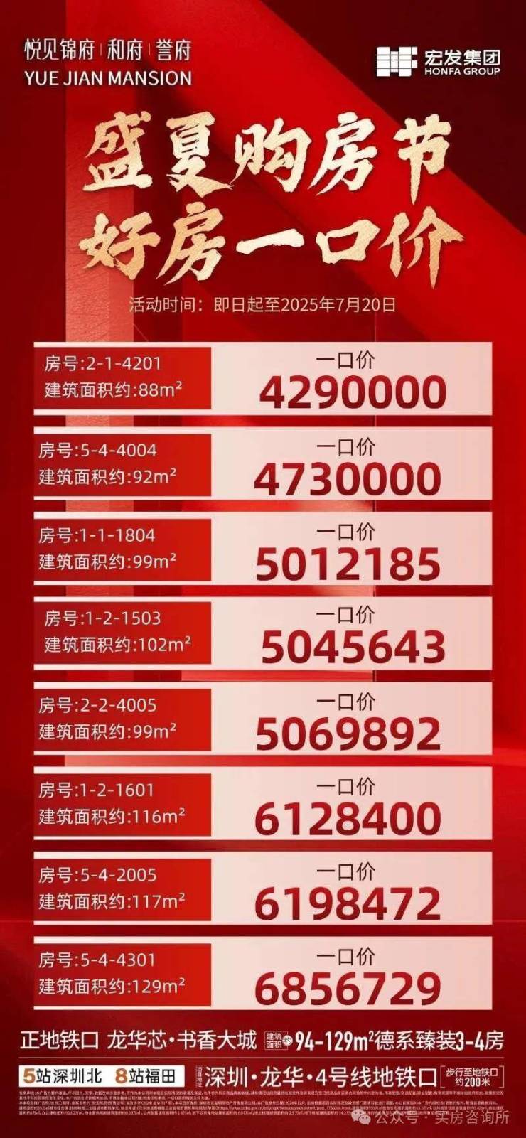 宏发悦见誉府丨锦府丨和府位于龙华中心地铁口、新华名校大学区、楼下还有九年一贯制清泉外国语学校,品质天花板,今年买今年住,加推限时一口价,小区唯一一套最低价誉府88㎡3房折后429万起!以往最低房源是92平米户型基本去到470左右,数量有限,先到先得,在售88-128㎡