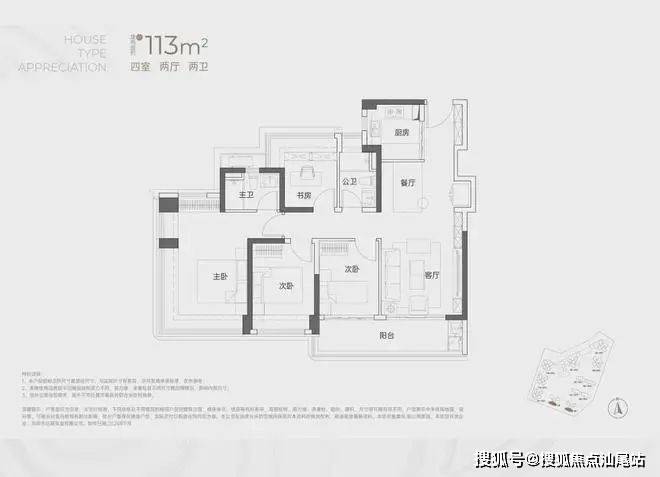 竖庭格局,西南向,基本居住功能与建面约108-110㎡4房2卫一致,但格局不一样,从目前公布的户型图上看,主要是主卧空间有了更大的提升,比如可以放更大一点的衣柜。但从位置上看,它所在的楼栋更靠近主干道,会有噪音影响。
