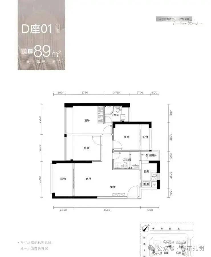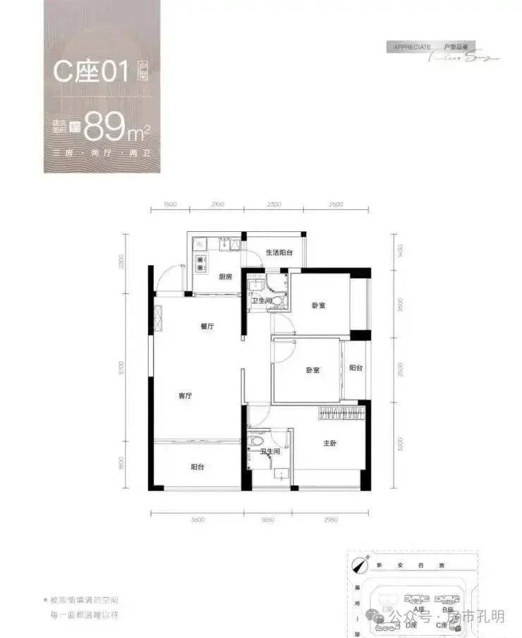 约89㎡精装3房,刚需改善性价比之选:东南/西南朝向