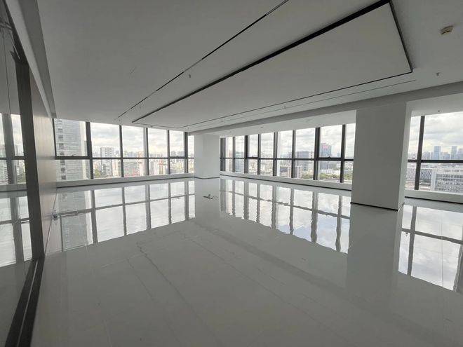 海王银河科技大厦项目概况:项目占地面积6098.59㎡,地下三层,地上28层。1至4楼为商业综合体,5至28层为写字楼,顶层设有直升机场和会所。写字楼标准层高4.2米。