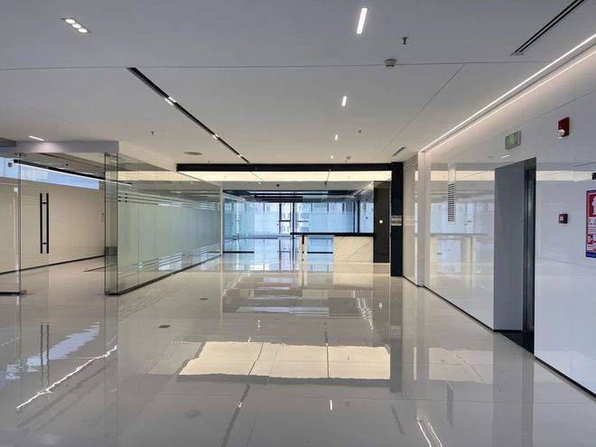 【智能化管理】集成智能门禁、环境监测及能源管理系统,全楼覆盖5G网络,高速电梯(高峰候梯时间≤40秒)与智能安防保障高效安全办公。