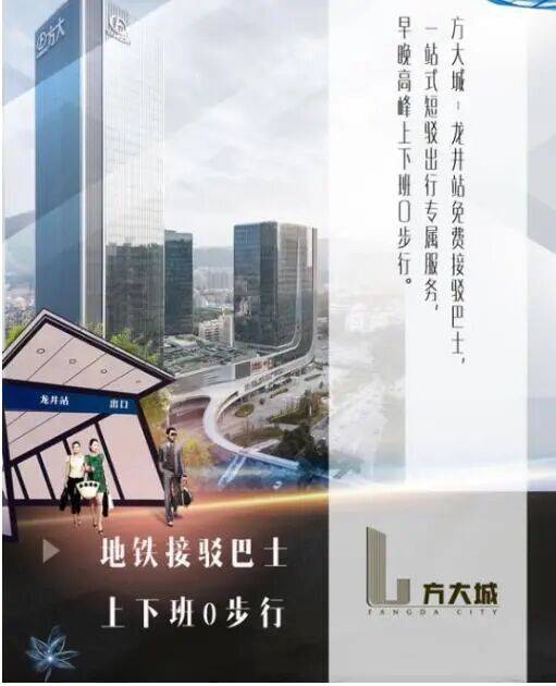 方大城特设往返龙井站的免费接驳巴士。此专属服务在早晚高峰运营,提供点对点无缝接驳,实现通勤0步行直达。