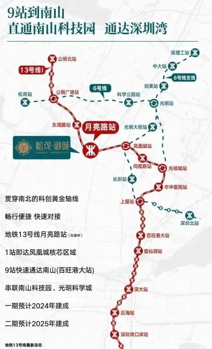 目前距离在建的13号地铁线“月亮路站”约400米,3站到光明城站,5站到石岩上屋站,计划在2025年通车运营。