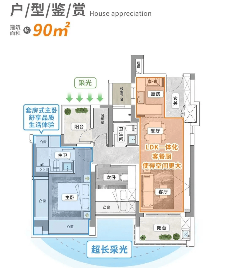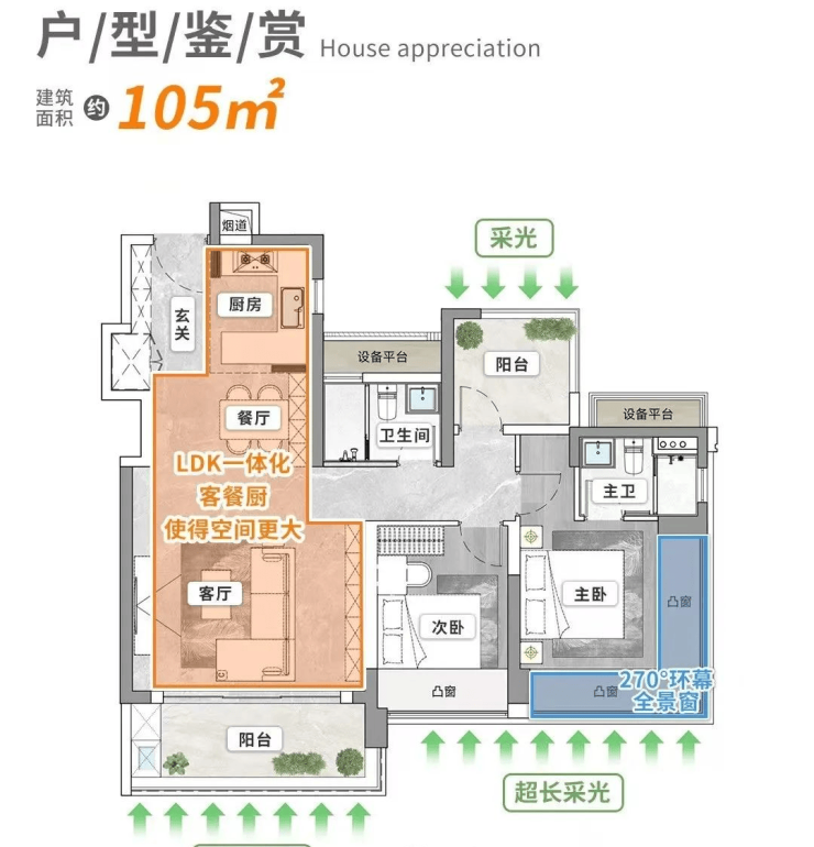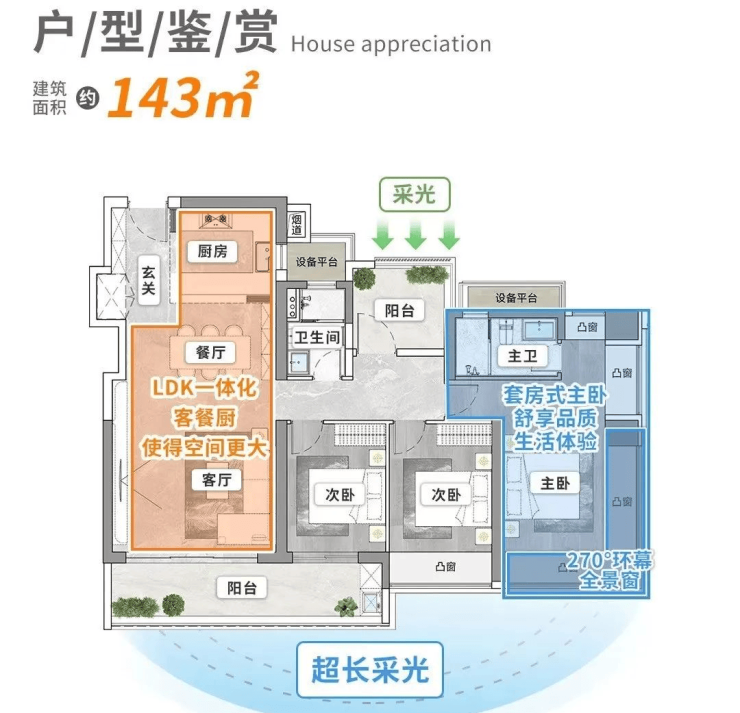 特点:270°公园景观,7.6米阳台+北向书房+设备平台,空间利用率极致